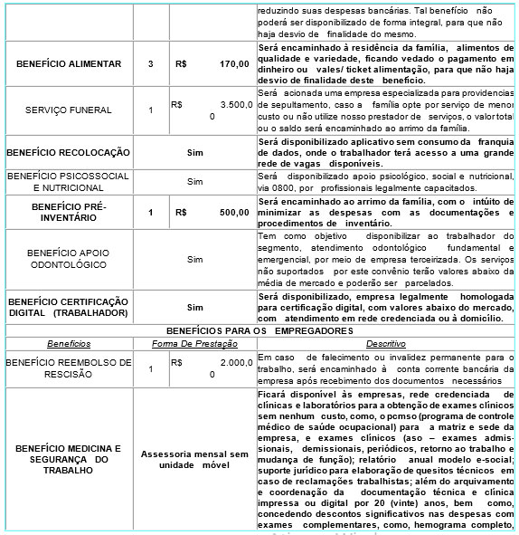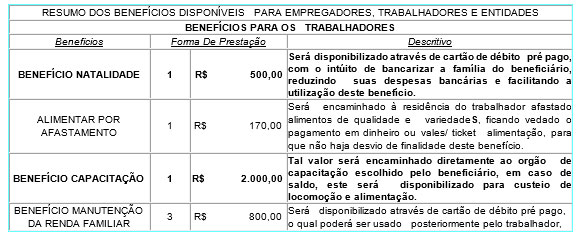 Parágrafo décimo primeiro - Para lisura e transparência na prestação dos benefícios, segue abaixo um resumo e breve descritivo da forma que eles serão disponibilizados. Tal procedimento é necessário para que não haja desvio de finalidade do benefício a ser disponibilizado e deverá ser rigorosamente observado, devido seu carater social. emergencial e de natureza alimentícia. A integra do Manual de Orientação e Regras que regem a prestação dos benefícios estará registrado em cartório e disponível no website da gestora.